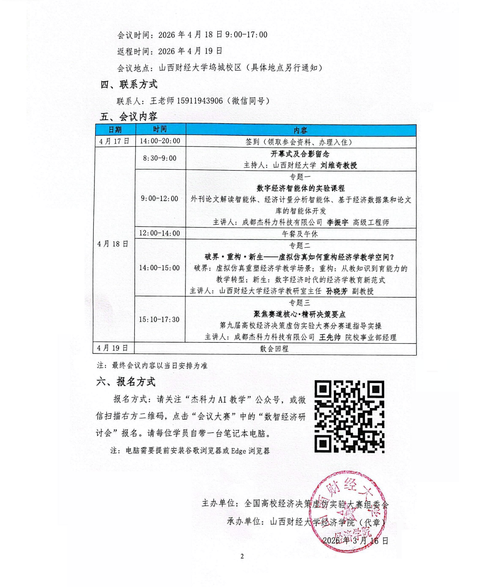 数智化经济教学交流暨全国高校经济决策虚仿实验大赛研讨会